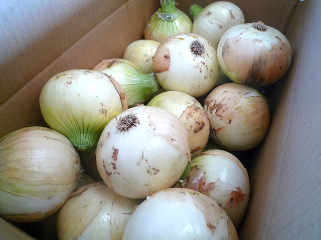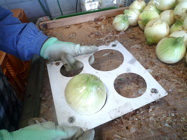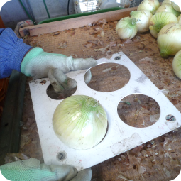 収穫してから玉ねぎ小屋で乾燥させてから冷蔵保存し、年間通して販売しています。